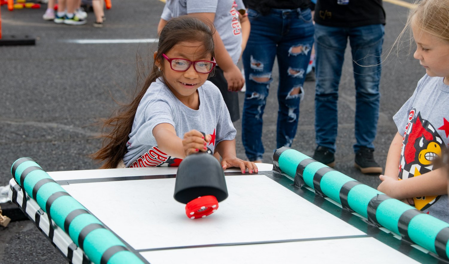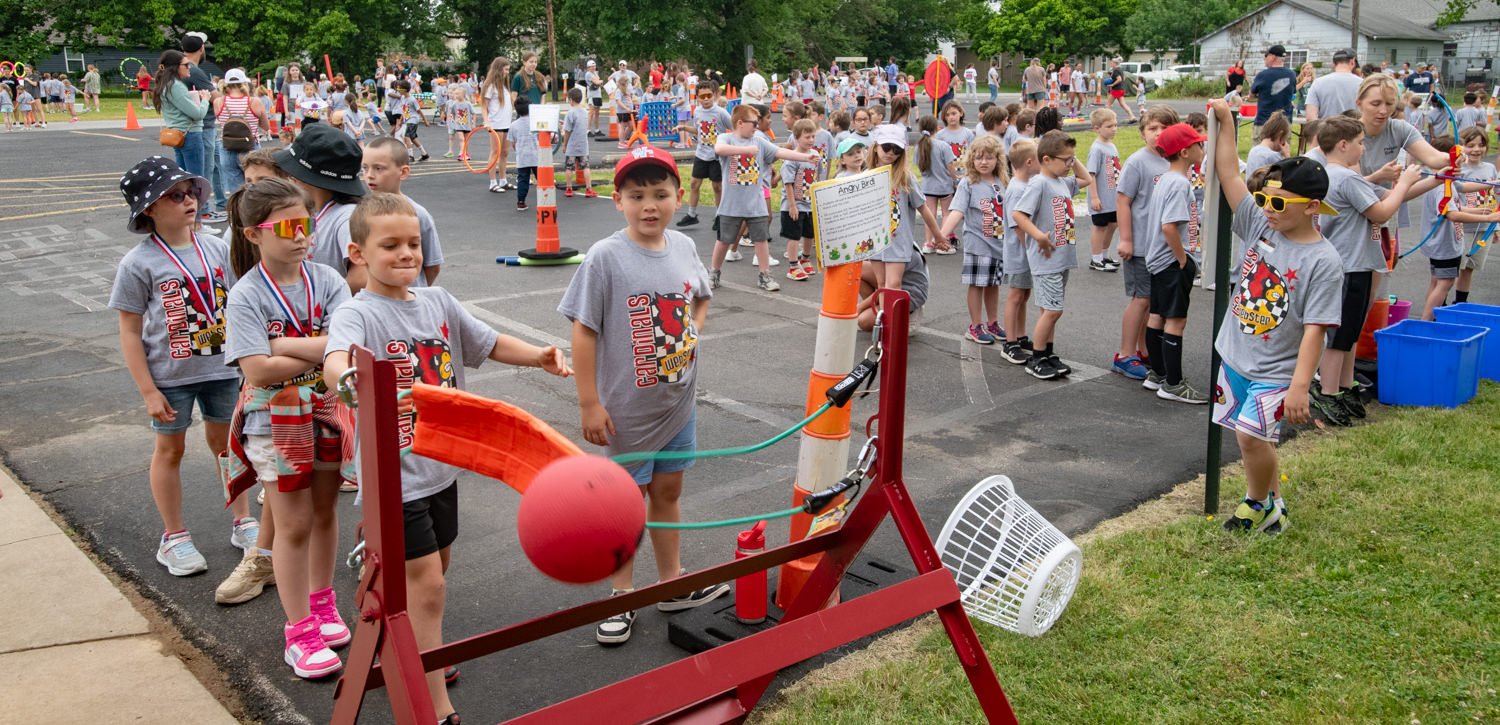 Field day is a big event that requires older students and community volunteers to run the many innovative events.