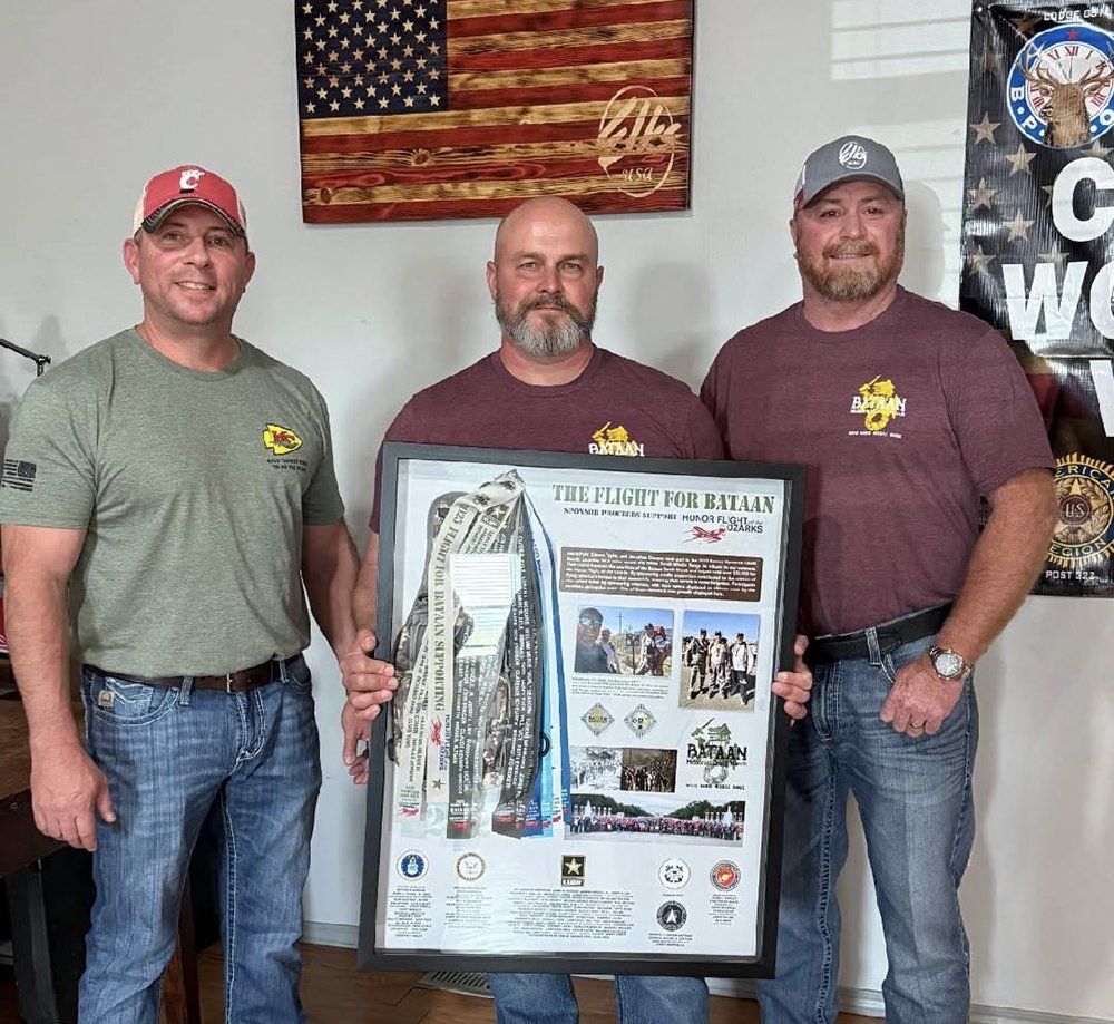 Three local men recently made good on their promise to complete the Bataan Memorial Death March … and then donate contributions they collected to the Honor Flight of the Ozarks.