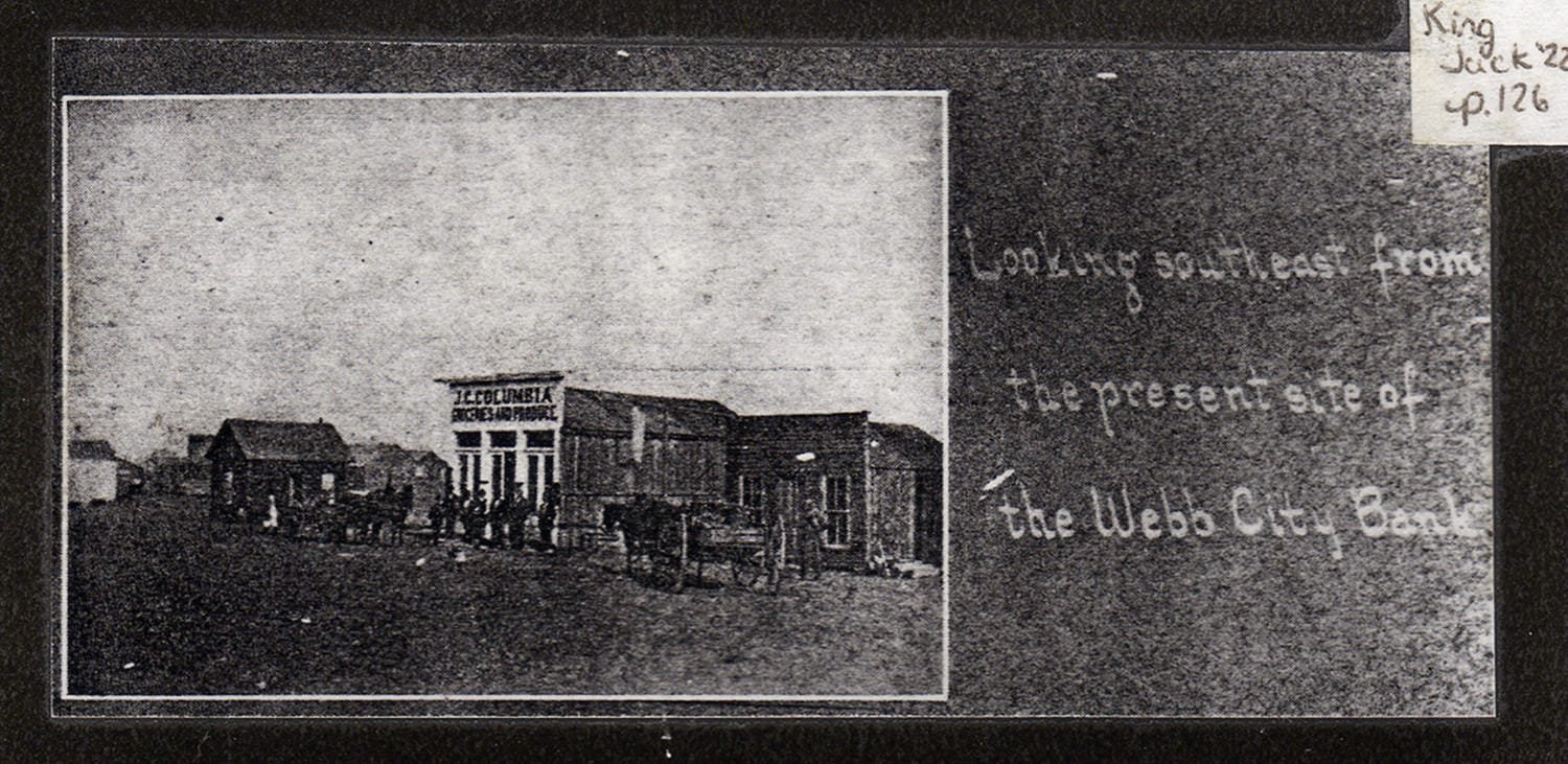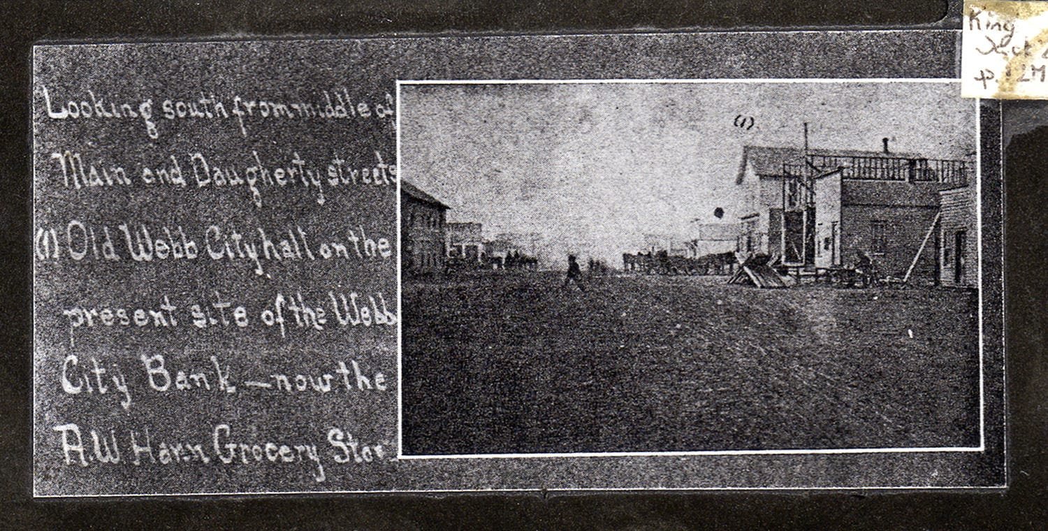 The pictures were considered historical when they were printed in the yearbook because most of the early wood structures had been replaced by brick buildings and the dirt streets had been covered with bricks by 1922.