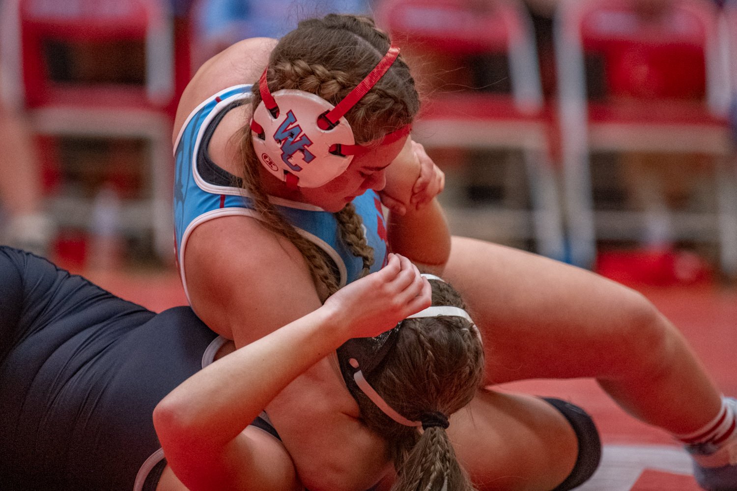 Webb City girls spotted Frontenac 30 points in the nightcap before Christensen started the comeback with a fall. That started a chain reaction of three more pins by Sierra Devore (140), Gracelyn Cook (145), and Kinley Sinclair (155).
