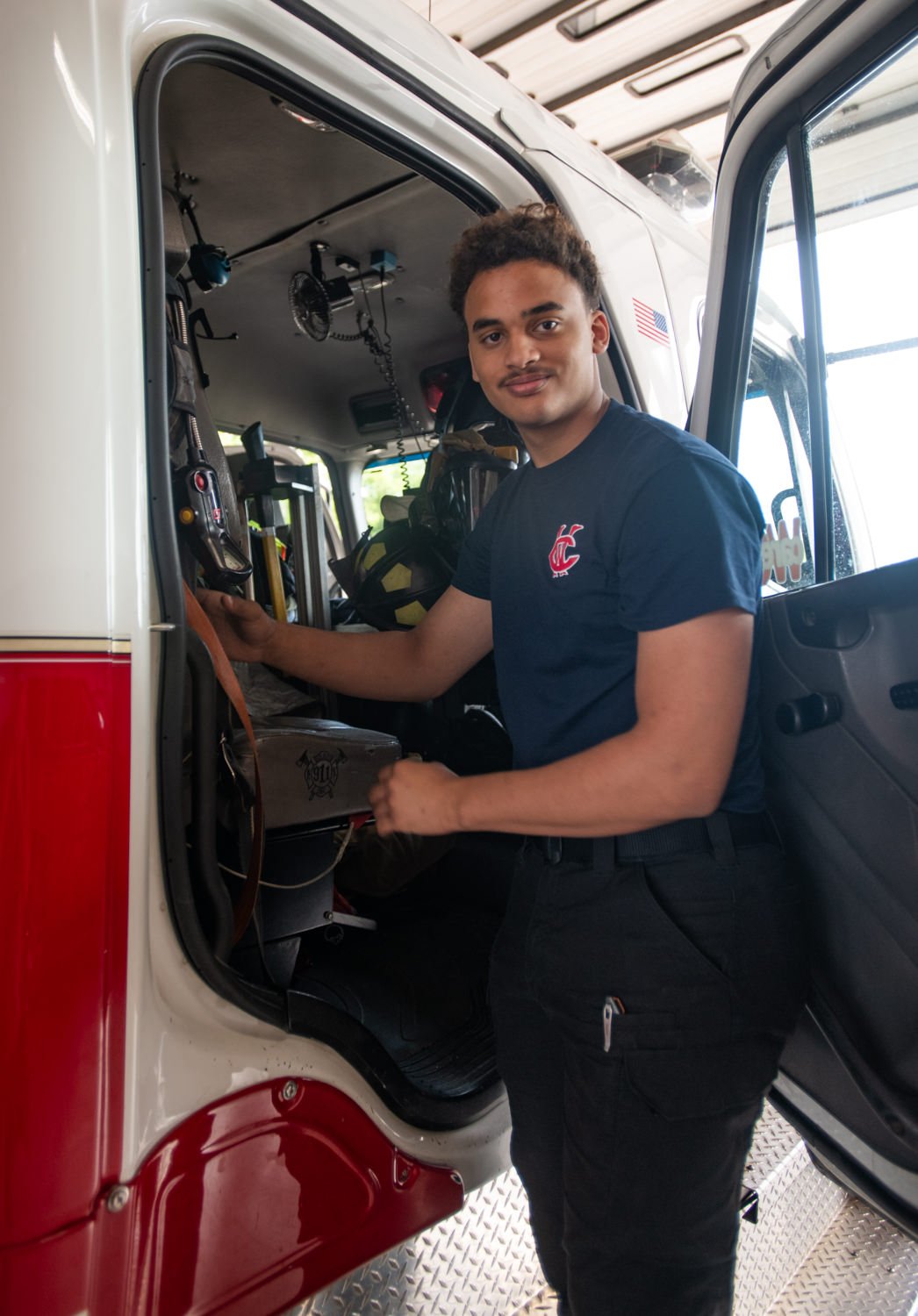 Deputy Fire Chief Jeremy Denton conducted a tour of the training center, where he’s training a class of new firefighters. One of his students, Camden Burnett, was ready to join the department as soon as he graduated from Webb City High School.