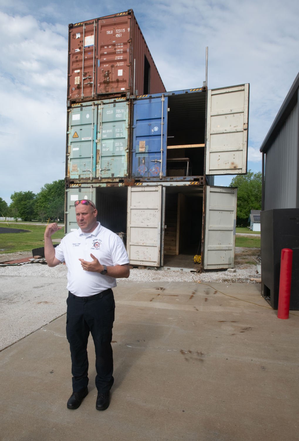 Chamber members also got to tour the new facility on the south side of the department, which is a stack of shipping containers where conditions firefighters encounter when fighting a structure fire will be replicated.