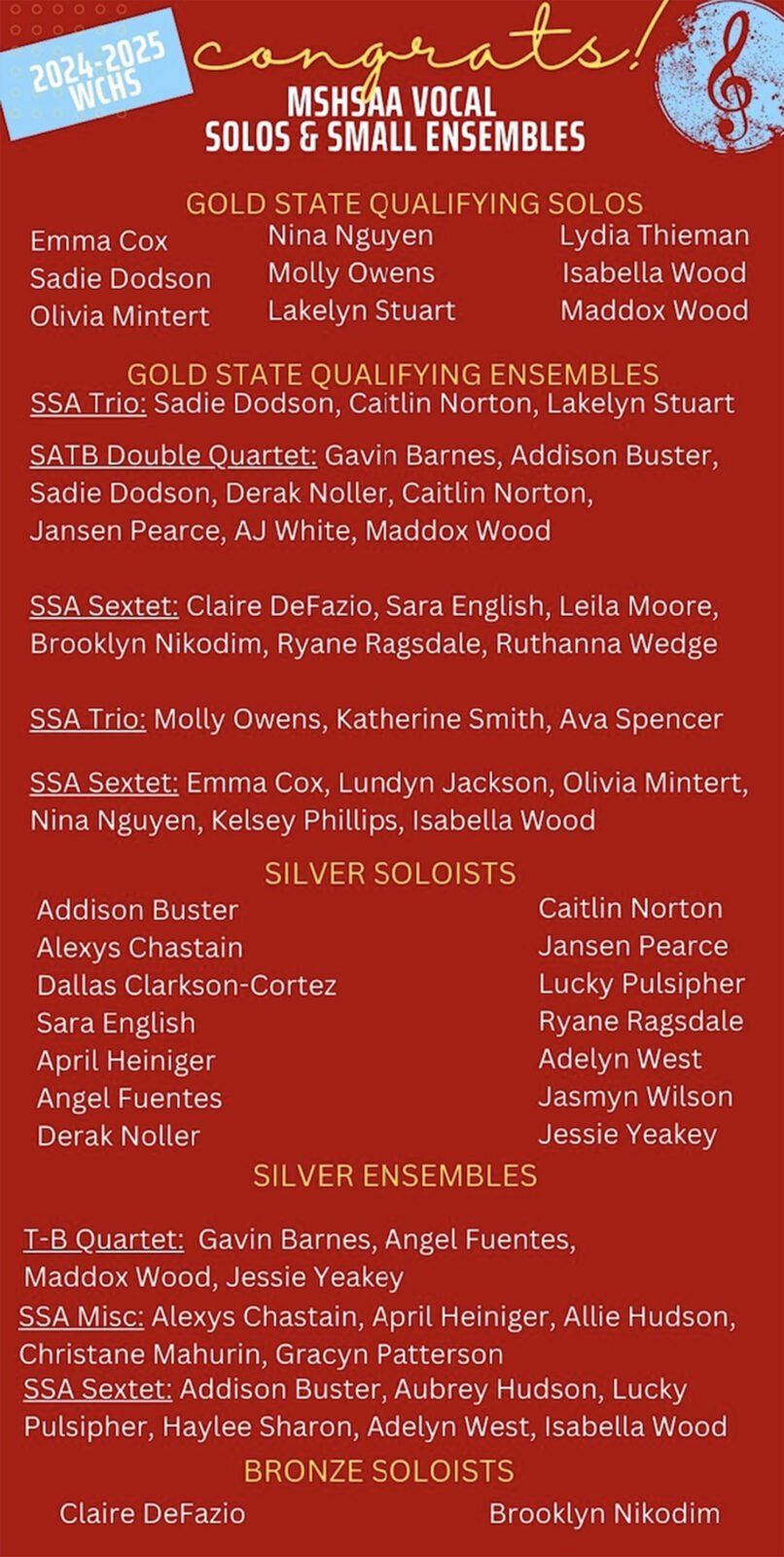 Melinda Benham, Webb City High School choral director, prepared this graphic to congratulate her students for honors they earned here Saturday during the MSHSAA District Vocal Festival.
