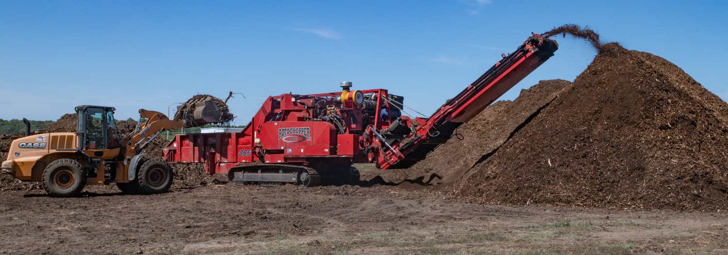 A wood grinding contractor has left the Center Creek Wastewater Treatment Plant site with mounds of fine wood chips suitable for making compost.