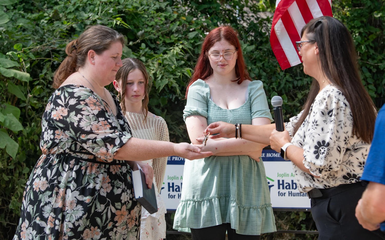Janene Houskeeper, a U.S. Navy veteran, accepted the keys to her new house during a ceremony Friday at 806 N. Tom St.