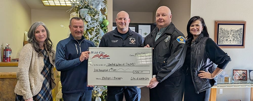 As promised, proceeds from the annual Badges & Burgers event, sponsored by Webb City and its employees, were dispersed Thursday.