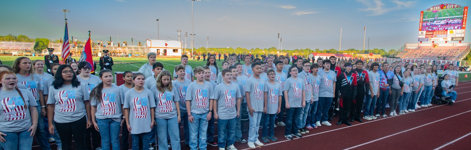The combined choirs performed Friday prior to the football game at Cardinal Stadium under the direction of Melinda Benham..