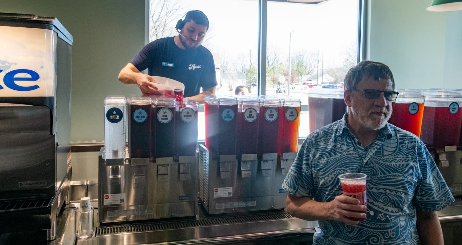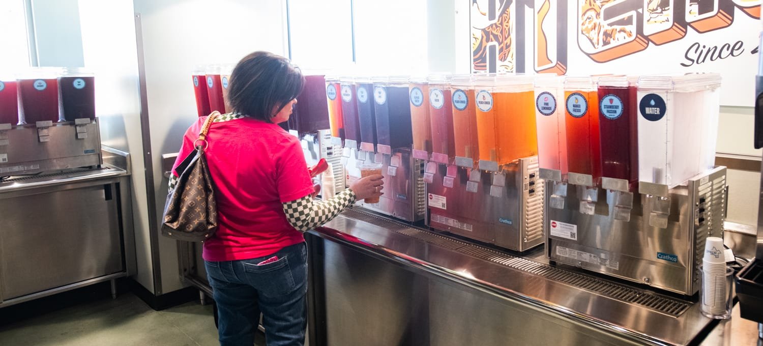 Tea, in many flavors, is the main thing, of course, either self-serve, by the gallon or packets to make it by the half-gallon at home.