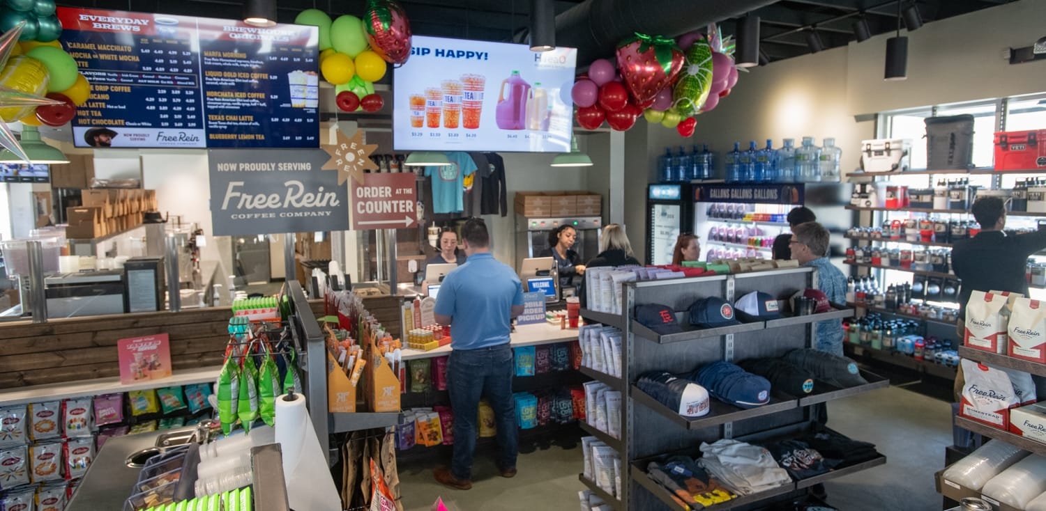 You can also buy ice, Free Rein coffee (by the cup or bag), candy and nuts, Belgian waffles, chips, jerkey, mugs and ice chests, and merchandise (t-shirts and hats).