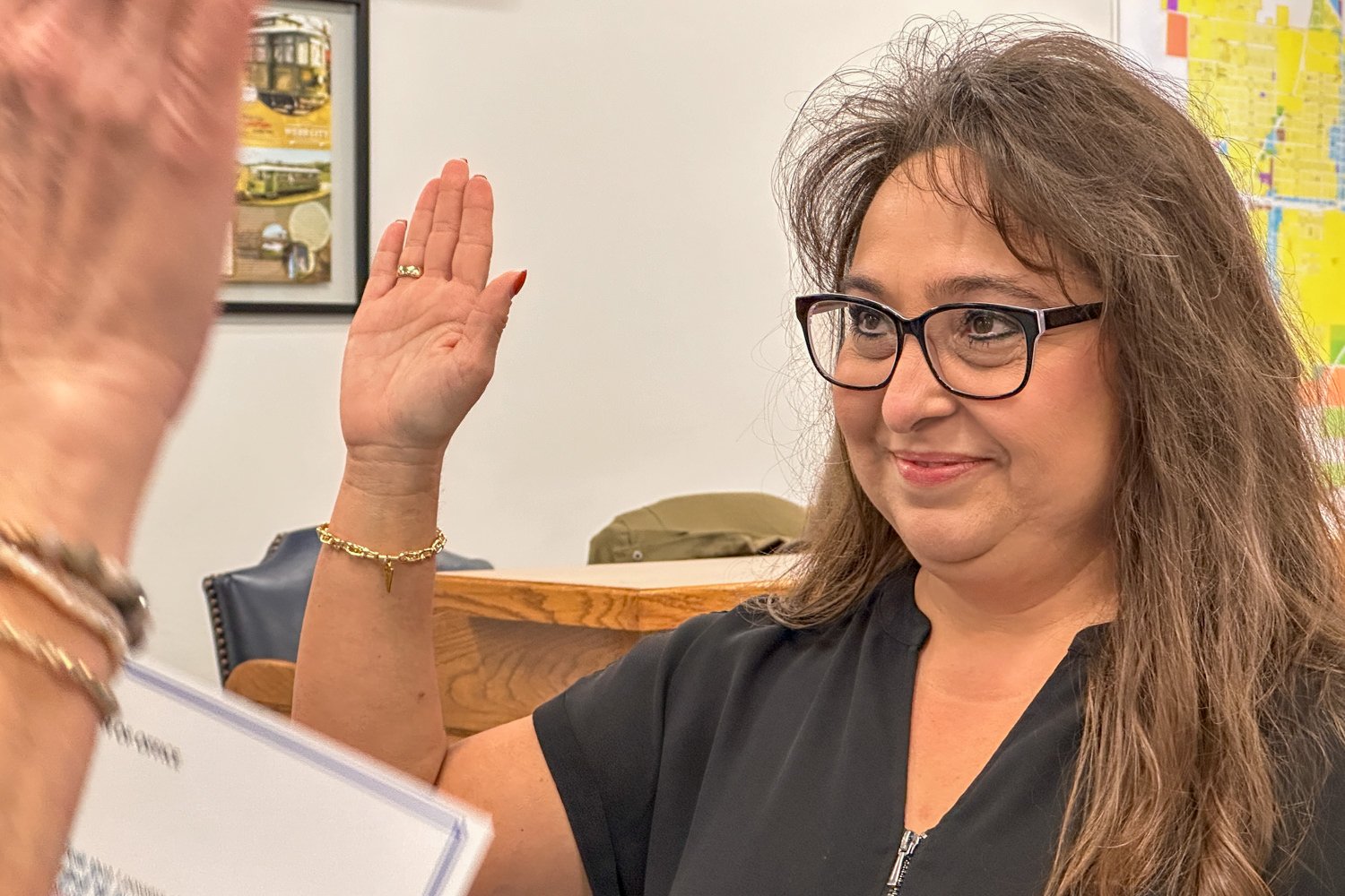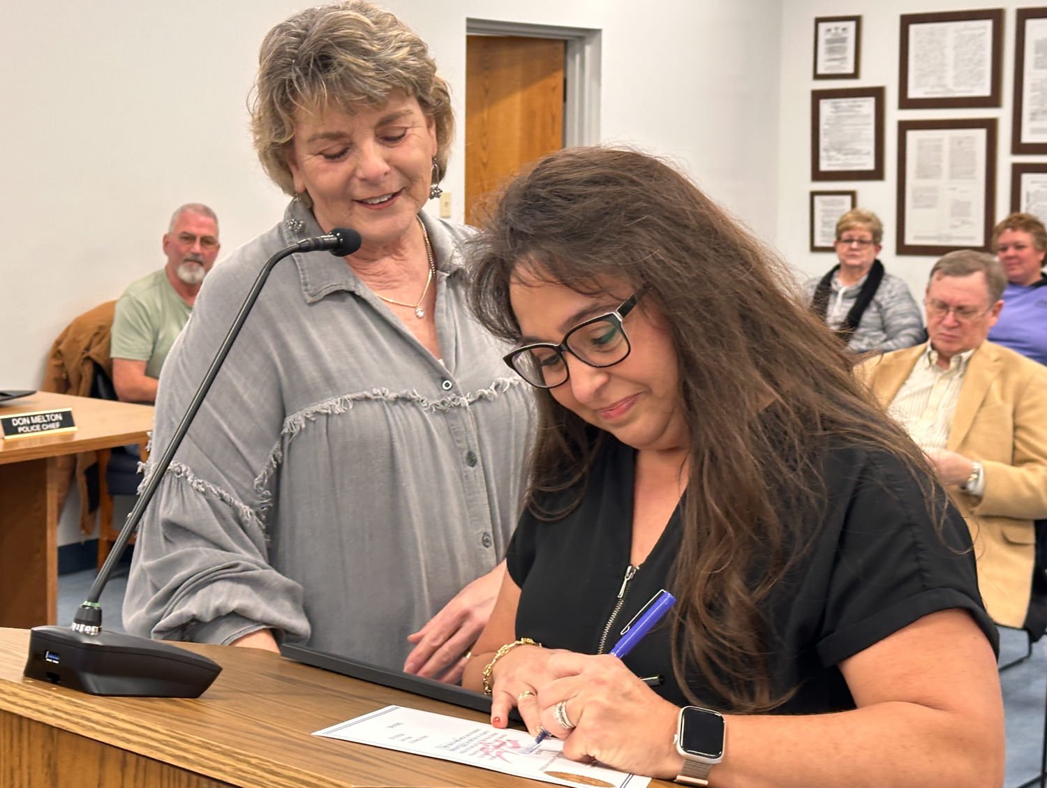 Kim DeMoss, the city clerk for Webb City the past 19 and a half years, swore in her replacement during the City Council meeting Monday.