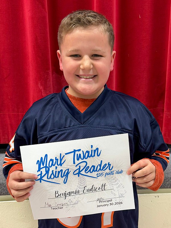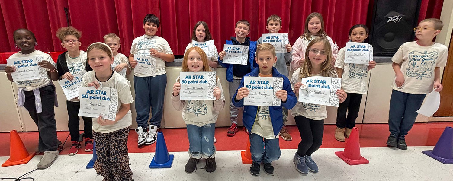 Several students were noted for joining Accelerated Reading point clubs this month. The 50 point club had a big jump of 14 students. These students are Evanna, Rylie, Luke, Kynlee, Samantha, Jahaven, Kason, Caiden, Mackenzie, Witten, Jude, Colbie, Amerie, and Lucas.