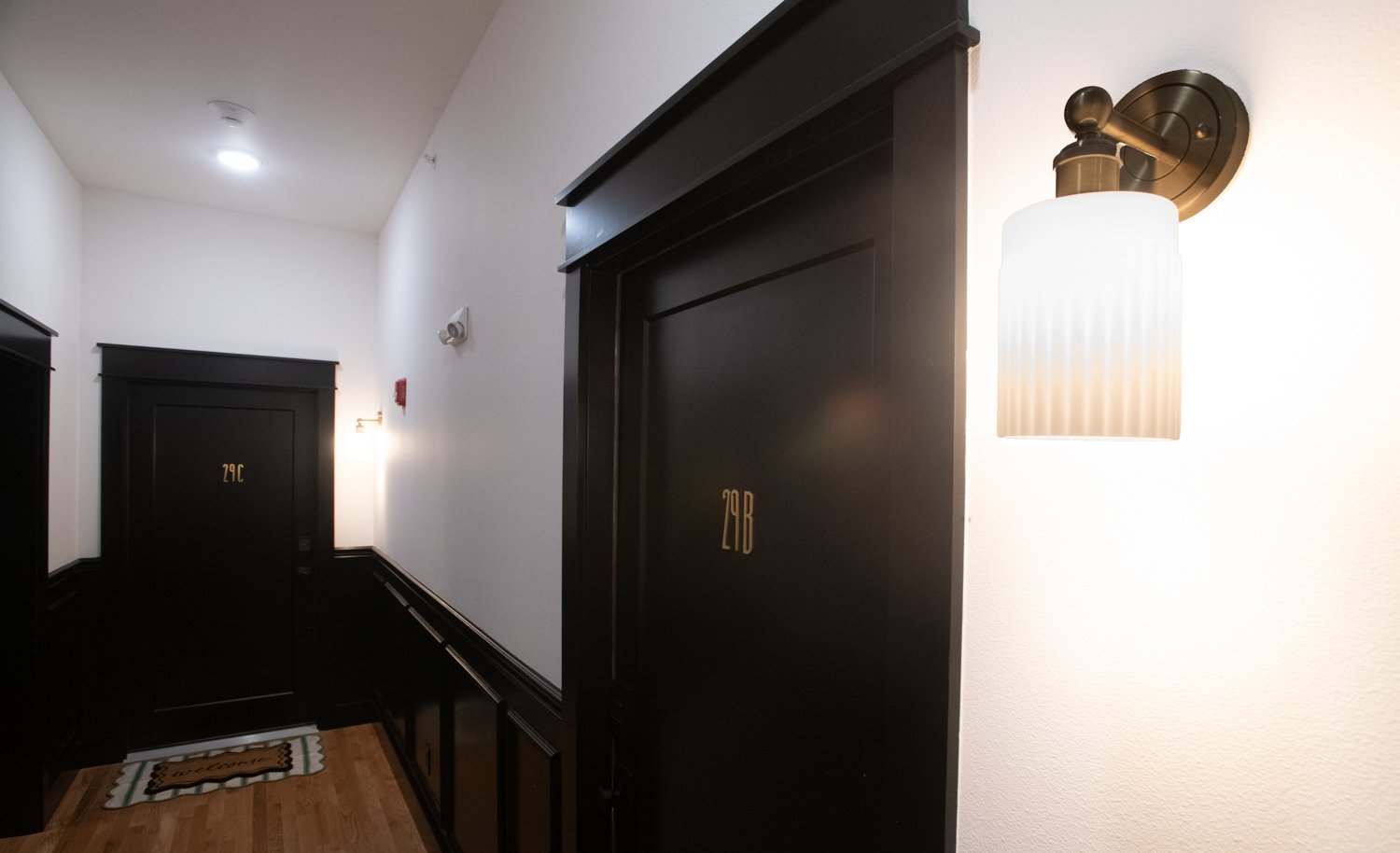 Another reason for the open house was to make it known that the two ground-floor commercial spaces are ready to be occupied. Both have more than 2,000 square feet of space. And there is public parking in the back.