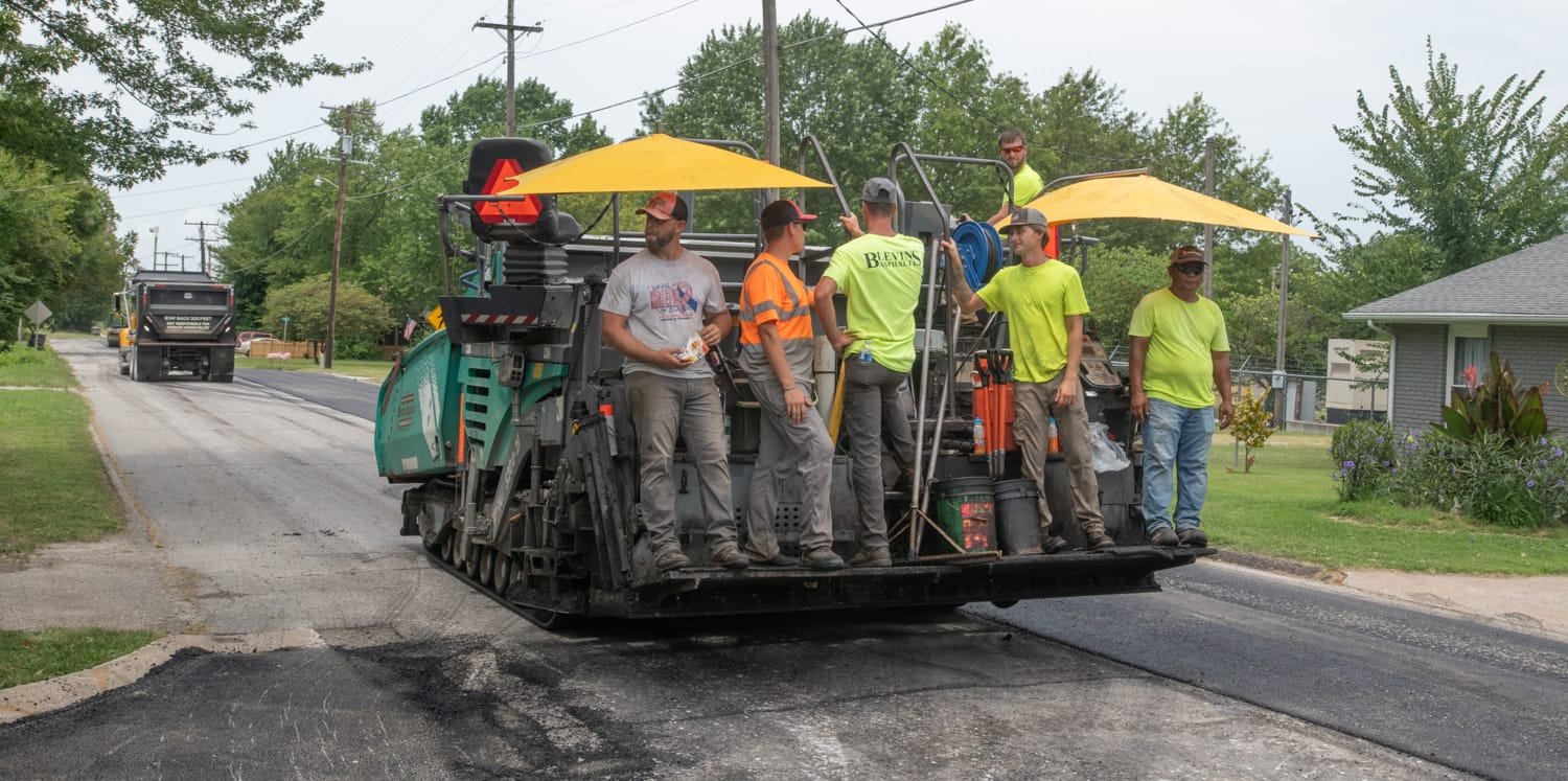 Blevins Asphalt, of Mt. Vernon, may have arrived on the job in Webb City later than scheduled but has gotten a lot done so far.