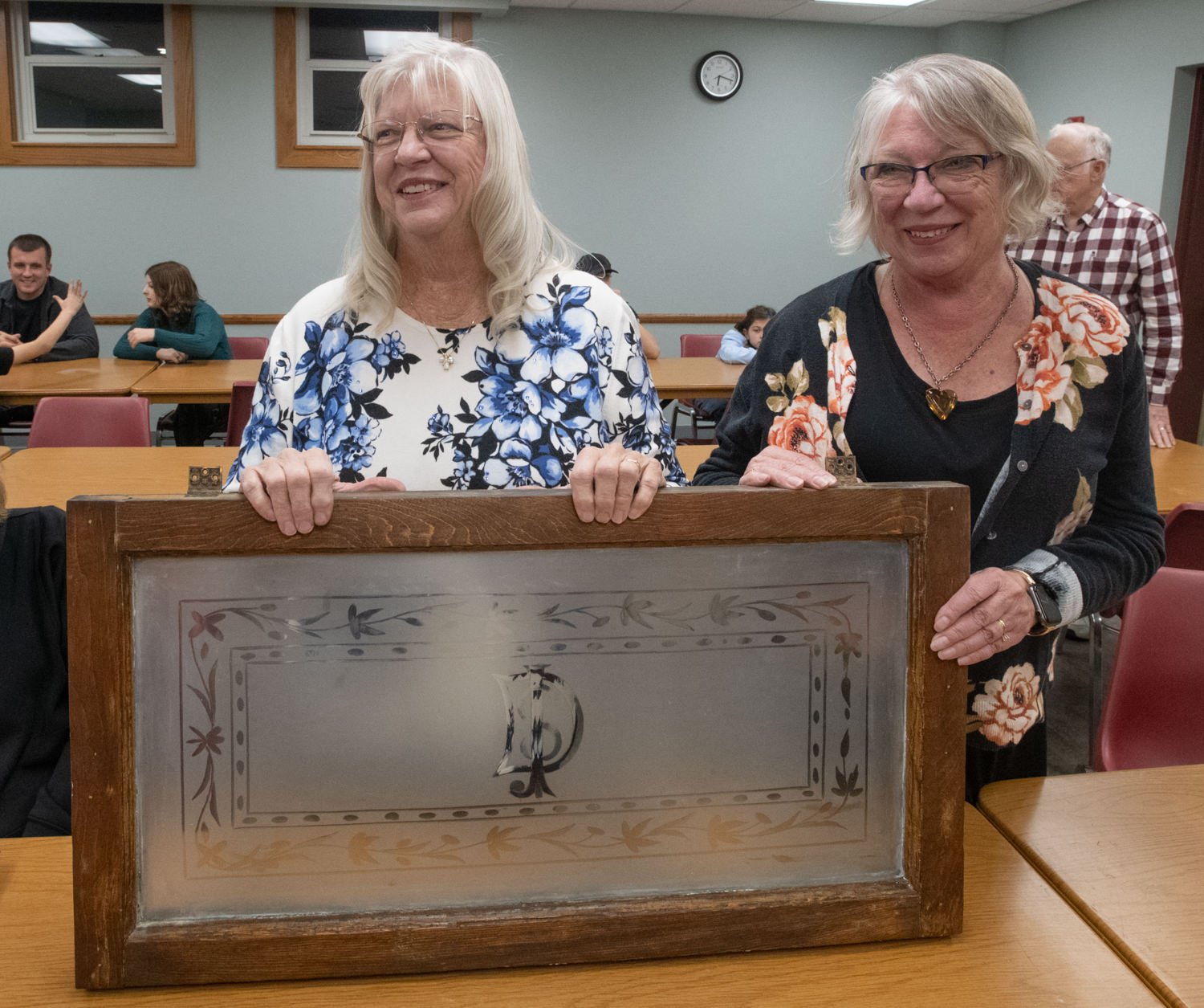 The group offered the etched glass transom that was mounted over the entry door that faced Third Street to the Webb City Area Genealogical Society. The transom was presented to the society at their Tuesday, Nov. 4, evening meeting at the Webb City Public Library. It is believed the initials of Jane’s second husband, Daniel J. Stewart, are etched into the glass.