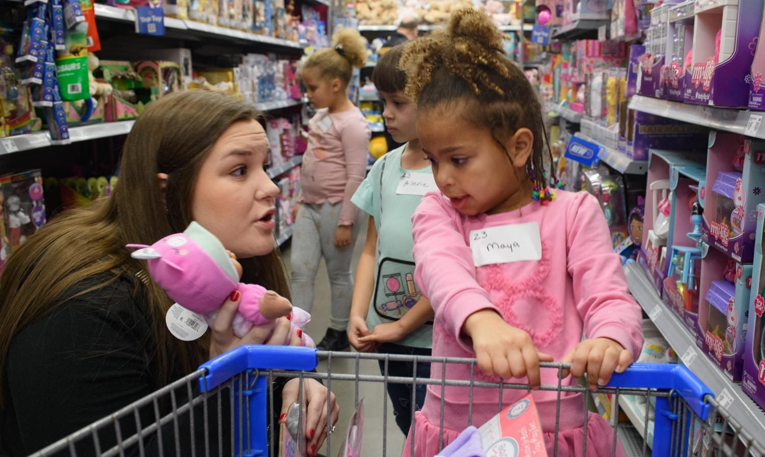 Seventy-five youngsters, each with $100 to spend, swarmed the toy aisles at Walmart early Saturday during the annual Shop With a Cop event.