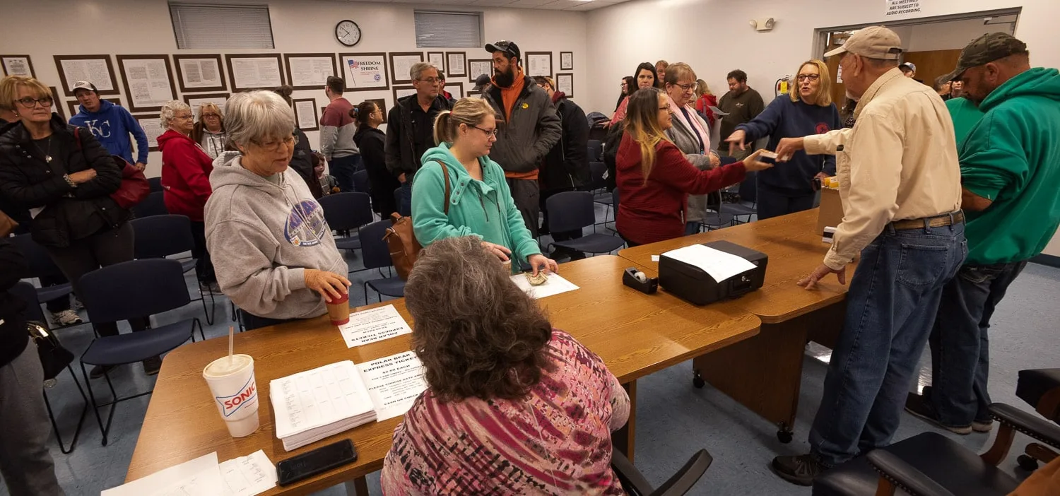 Parks and Recreation Director Tom Reeder handles a transaction.