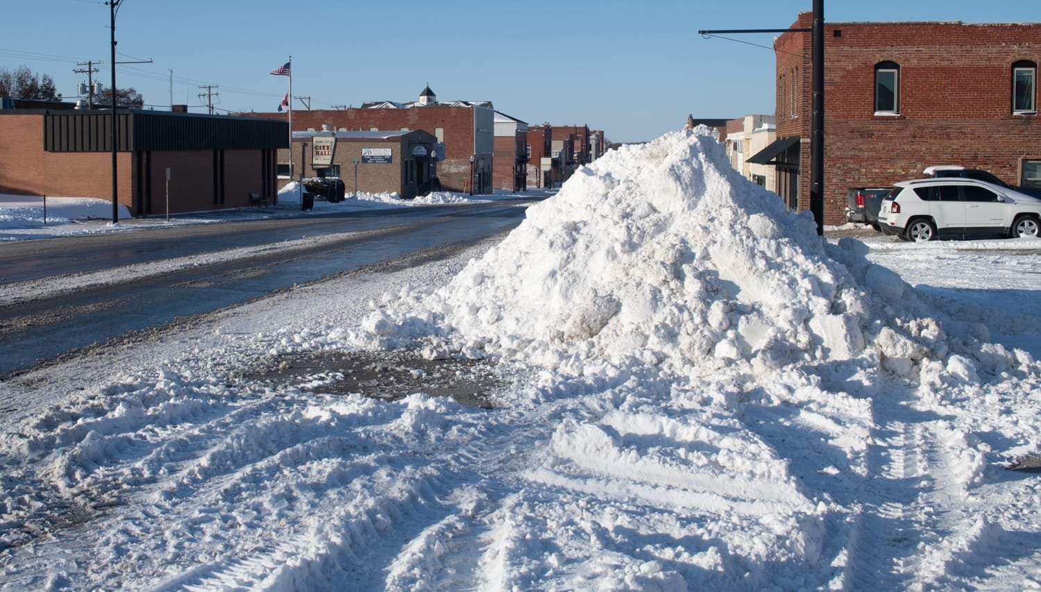 Mounds of piled snow on Main Street will likely have to be hauled off because melting would take too long.