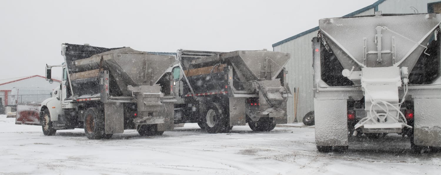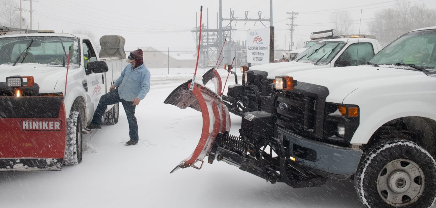 Trucks with snowplows attached make a pass on Madison Street at about 10 a.m. Tuesday.